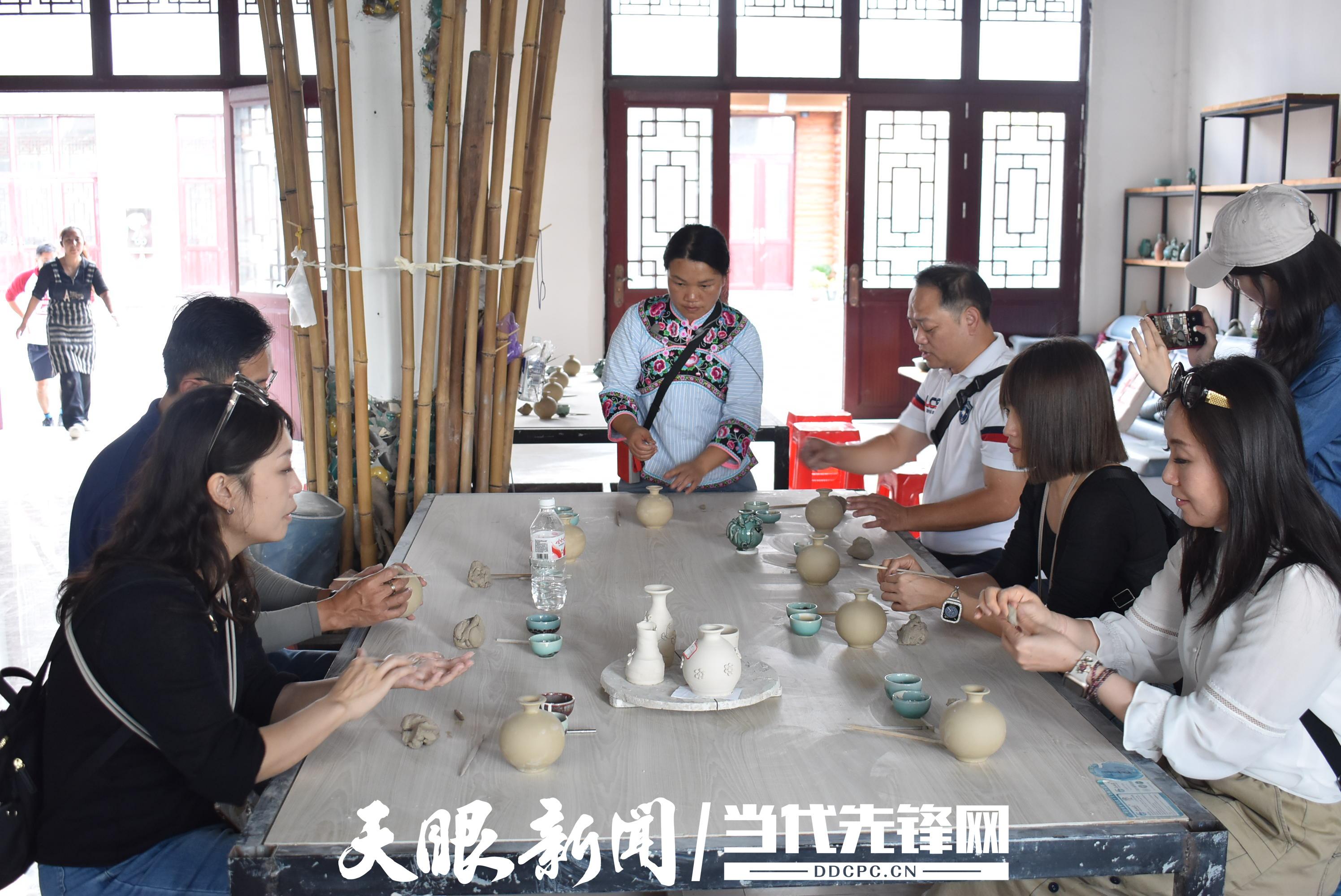 现场,一个个融合了布依族本地文化的陶具憨态可掬,古朴的制作工艺吸引了台胞们的目光。在参观牙舟陶生产工艺后,台胞们还亲自体验了纯手工制作陶艺的乐趣。