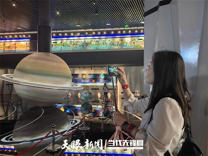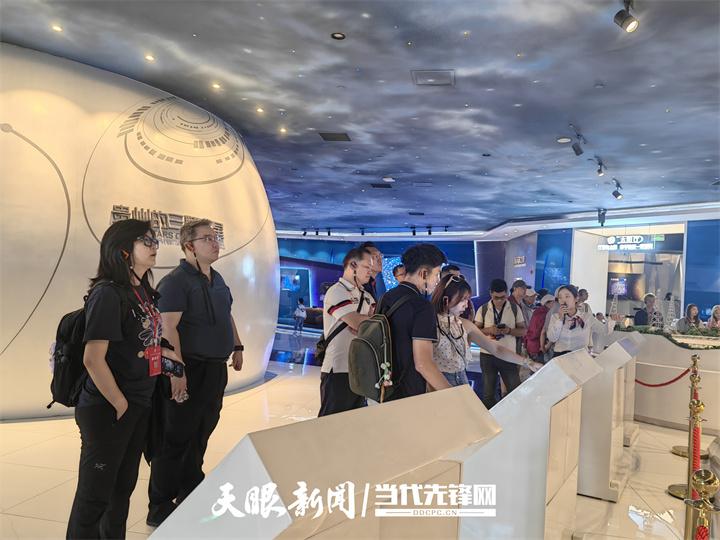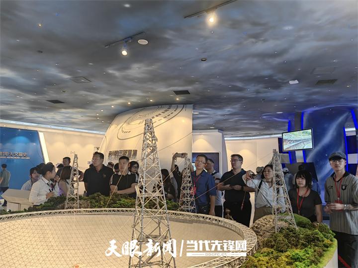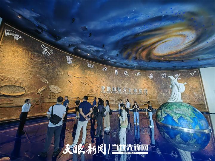 在平塘国际天文体验馆,考察团一行通过参观学习,了解从古代浑天仪、圭表等传统天文观测工具到现代射电望远镜的发展历程,深入了解中国天文事业的跨越式发展,致敬科研工作者深植群山、为国铸器的赤子匠心。